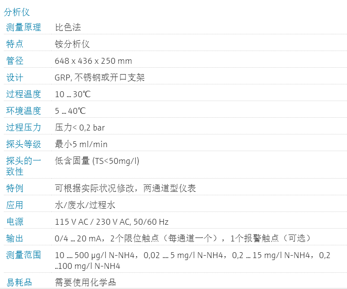 E+H氨氮分析儀使用一體化光度比色法測量系統,應用于污水處理凈化與監控,活性污泥池監控,自來水凈水監控,工業廢水過程監控等。