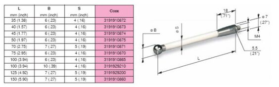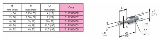 MARPOSS根據客戶需求可以提供陶瓷和鋼兩種材質的測桿。在選擇測桿的時候,應盡可能使用最短的測桿當必須使用長的測桿時,最好選擇陶瓷材料的測桿,盡可能避免使用延長測桿,特殊測桿可以特殊訂購。