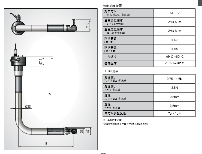MARPOSS生產車床檢測用的高精度對刀臂。MARPOSS對刀臂適合用在小規模生產和低自動化要求的機床上,由一個固定基座和一個移動手臂組成;接觸式測頭安裝在移動手臂上或安裝在機床上的基座。在機床加工時配備保護蓋,防止鐵屑和冷卻液。