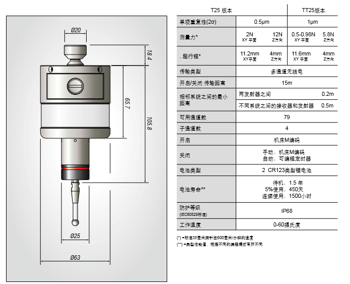 MARPOSS無線傳輸測頭WRP60測頭適用于大型機床和立式車床。結實的本體和超長的電池壽命相結合 它可以配合馬波斯T25和TT25測頭使用,加長桿最長到一米。 可與WRI集成接收器接口一起使用。WRP60屬于無線電傳輸觸發式測頭,利用模塊化設計,可以滿足用戶的任何需求。適用于MARPOSS T25、TT25及TT30觸發式測頭的各種場合,并與WRI接收器兼容。