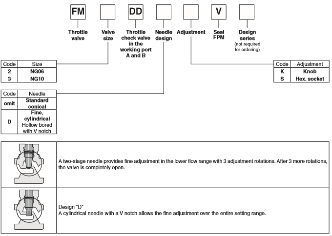PARKER流量控制閥FM系列是采用夾層設計,節流閥和單向閥設在端口A和B,FM2和FM3可以用作節流或通過改變安裝位置節流節流閥。兩種類型的計量針的設計可在訂貨FM2和FM3閥來實現,以適應應用程序所需的油門特性時。