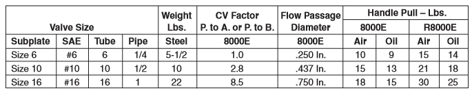 PARKER液壓單向閥8000E系列可以2,3和4向手動切換,閥體零泄漏,可用于潤滑的空氣,液壓油,和水。閥設(shè)計需要低驅(qū)動扭矩,并且可以在負(fù)載必須保持長時間和困難的條件下的應(yīng)用中。8000E系列閥具有高污染的耐受性和長壽命,閥設(shè)計需要低驅(qū)動扭矩,面板式安裝標(biāo)準(zhǔn)。