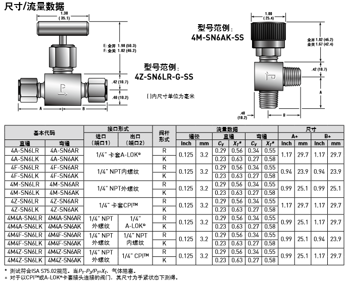 PARKER針閥SN6系列部分產品型號: